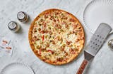 Papa Ray's pizza sauce, mozzarella cheese, grilled chicken breast, smoked bacon, fresh tomatoes & Bermuda onions
